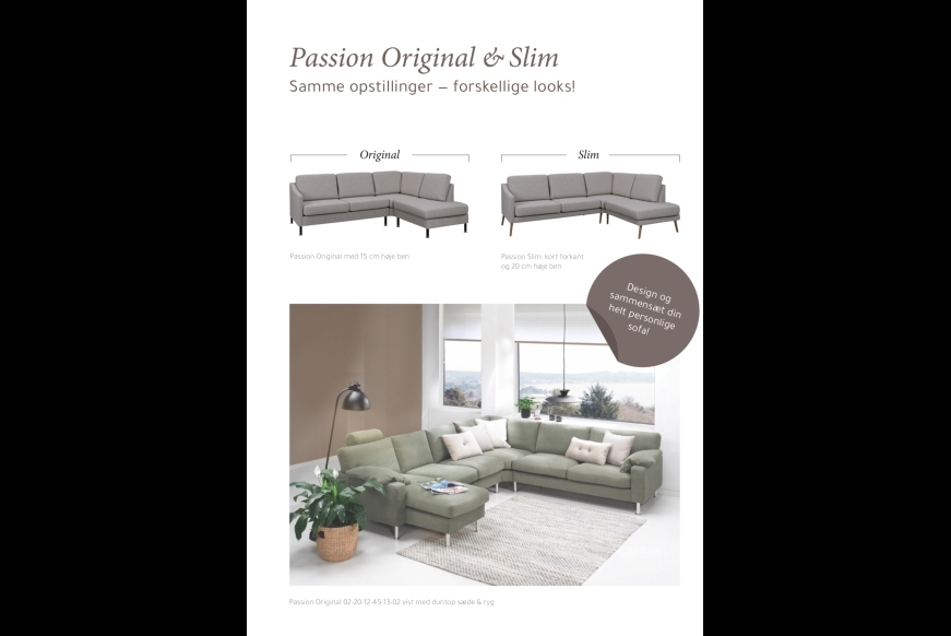 Passion er fra Top-line, en dansk leverandør som producere polstermøbler i høj kvalitet, men som stadig formår at kunne sælges til konkurrencedygtige priser. Danbo Møbler har haft et tæt samarbejde med Topline i mange år.