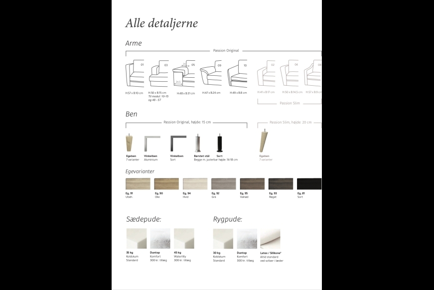 Passion modulsystem. Byg-Selv, med mange muligheder. Byggesystem med et højt kvalitets niveau, hvor kvalitet, design og siddekomfort går hånd i hånd. Behandler man sin sofa korrekt, er det en sofa, med lang levetid.