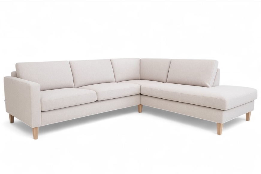 Info: Moderne og smart sofa med open end.Mål: 228 x 219 Cm