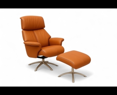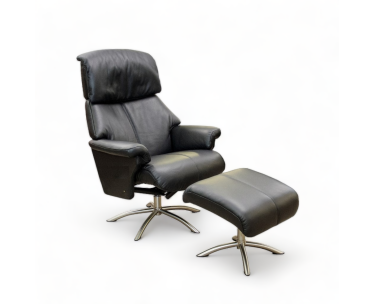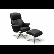 Info: Calibra høj lænestol med justerbar nakkeregulering og tilhørende fodskammel.
