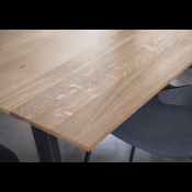 FLEX fra Kristensen & Kristensen i skandinavisk stil. Et lækkert bord produceret af dansk producent med hovedkontor i Esbjerg. Bordet er vist her i massiv oliebehandlet eg med sort olieret ben.