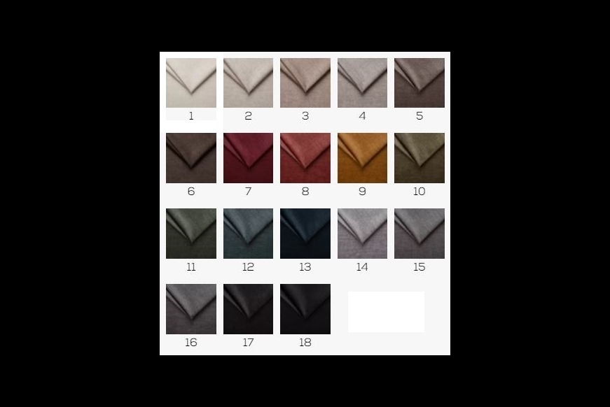 Stof gr. 1: Happy, Samoa, Raquel, Vogue, Posso, Ontario, Leo, Luet, Aragon, Storm.