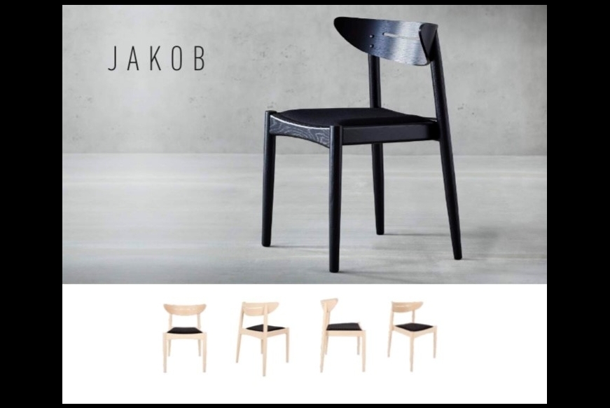 Jakob spisestuestolen er designet af møbelarkitekt Jakob Berg. Den formspændte ryg giver fin støtte til ryggen, og det behagelige sæde giver god siddekomfort. Jakob stolen er stabelbar.
